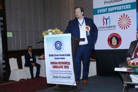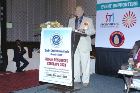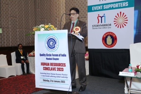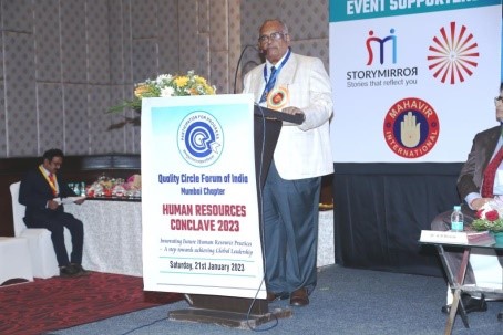 Mr. D.K. Srivastava talked about formation QCFI as a National Body in 1982 and explained its objectives. He also presented various activities, training programs, certification programs and its connection with JUSE (Union of Japanese Scientists & Engineers). Mr. Satish Kalokhe congratulated Mumbai Chapter for organising HR Conclave under leadership of Mr. K.B . Bharati. He said the HR function has become very important in the present business scenario.