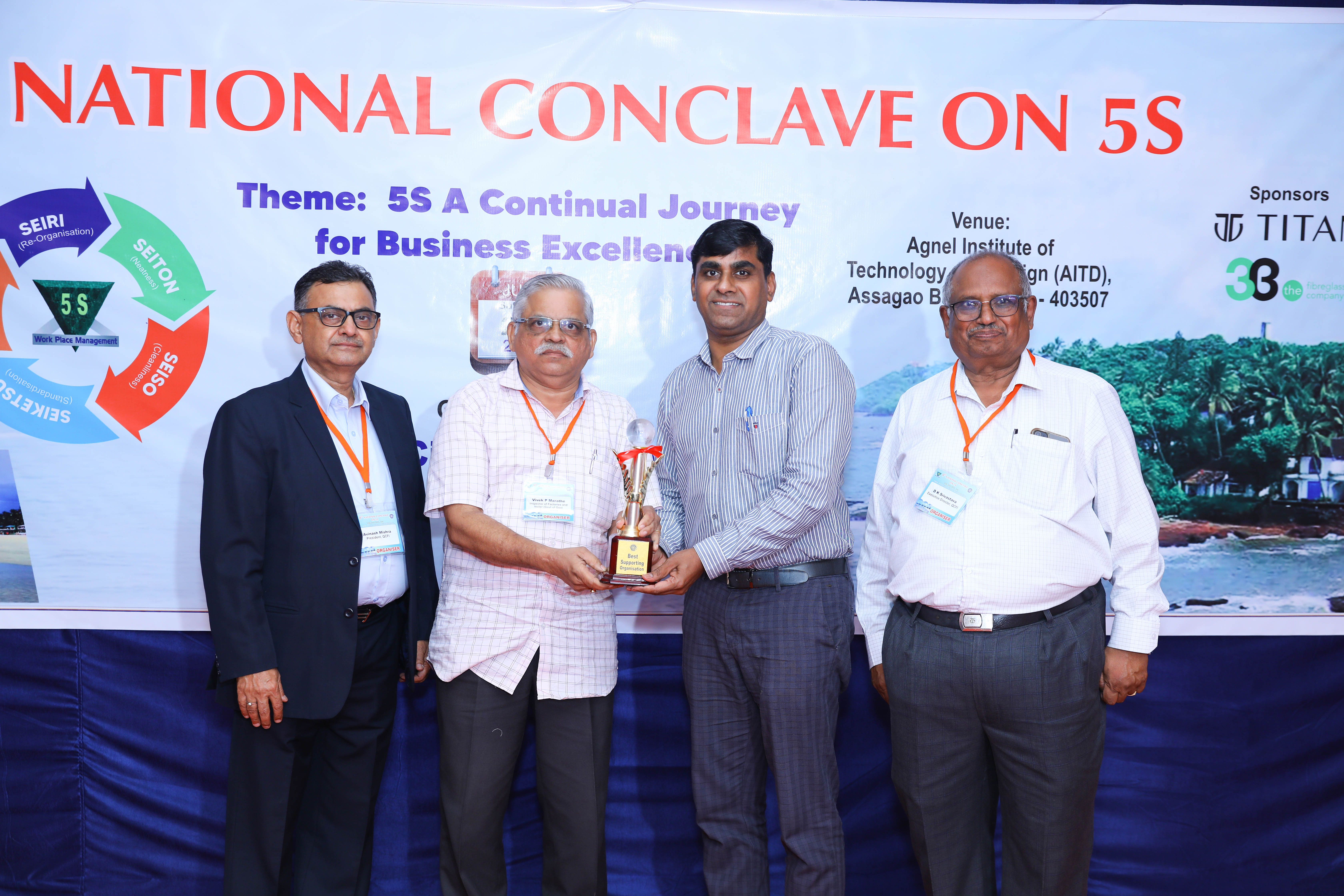 Grateful thanks to the organizations, participants who have presented enthusiastically about the improvements they brought by implementing 5S in their respective organizations. QCFI thanks Goa Glass fiber for their total support in organizing this conclave in association with us and to the college Agnel Institute of Technology and Design (AITD) for their full support. Our Gratitude to the sponsors Titan watches and Goa glass Fiber Pvt Ltd. Our thanks are also due to advertisers.