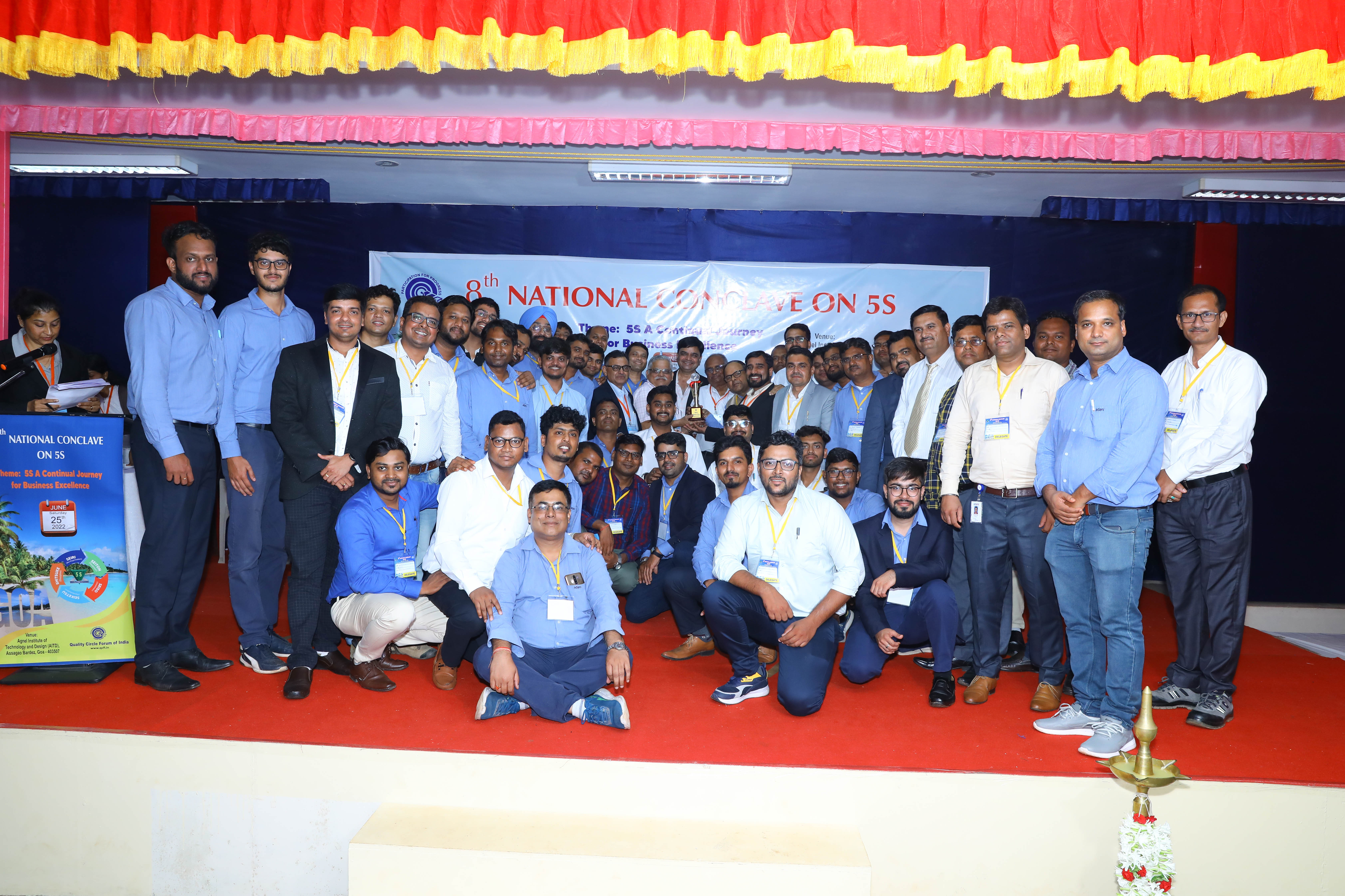 8th National Conclave on 5S had a grand start on 25th June, 2022 at Agnel Institute of Technology and Design (AITD), GOA. Registration commenced at 8:00 AM and went on very smoothly without any hiccups. Case study presentations in 8 parallel halls having 1 judge at each of the halls for evaluating the 5S Presentations / Kaizens . The Presentations started by 9:00 AM sharp and ended by 2:00 PM.