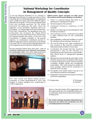Quality Circle India A Two day National Workshop for Co ordinator in Salient points which emerged out after group