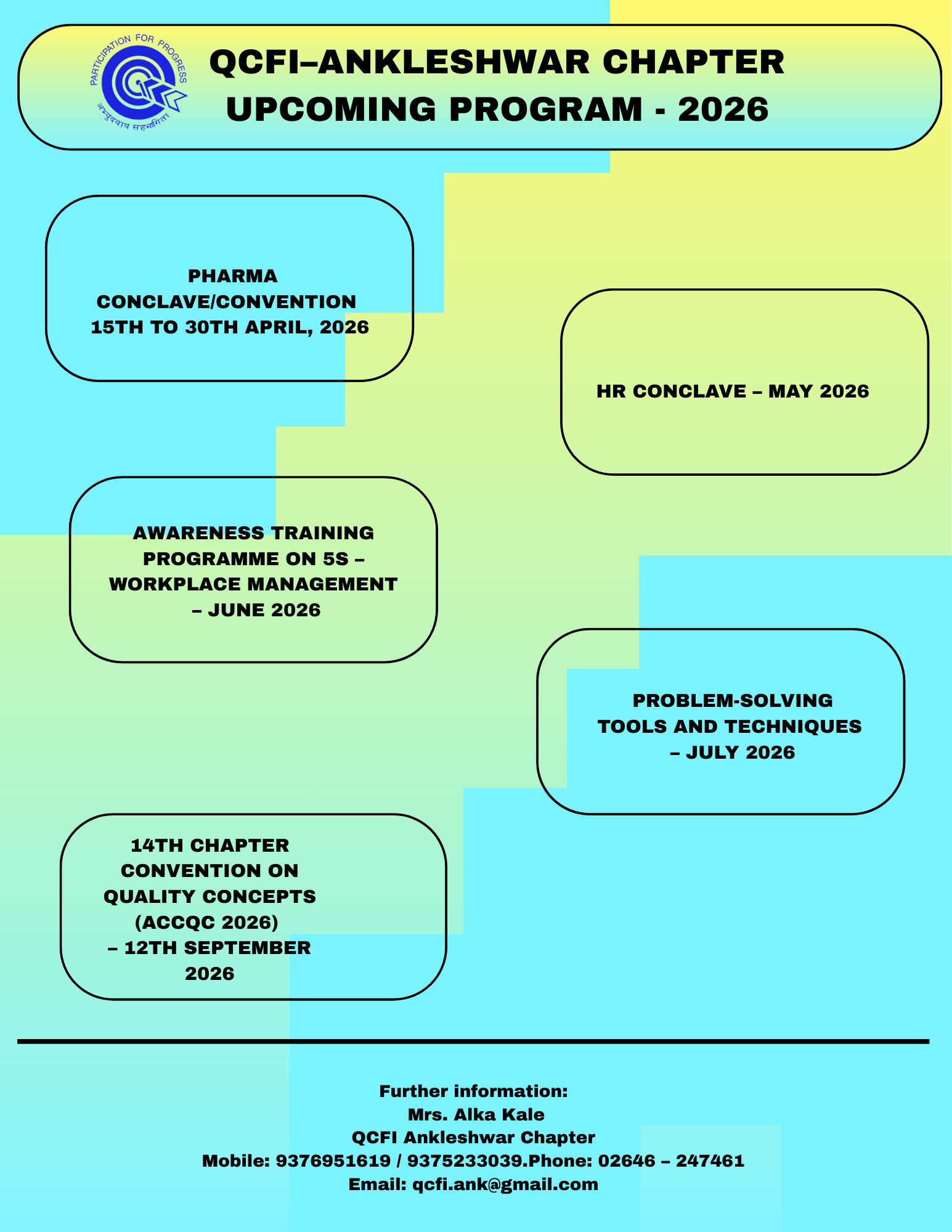 QCFI Ankleshwar Chapter upcoming programs 2026.