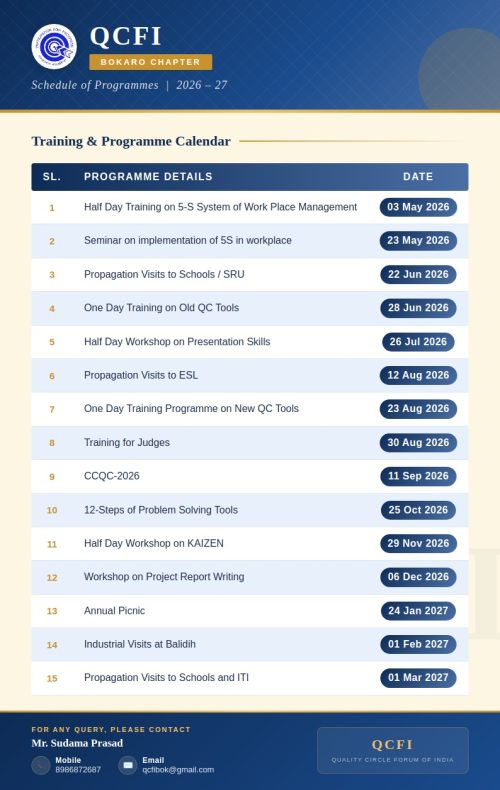 Upcoming programs training calendar by QCFI Bokaro Chapter 2026