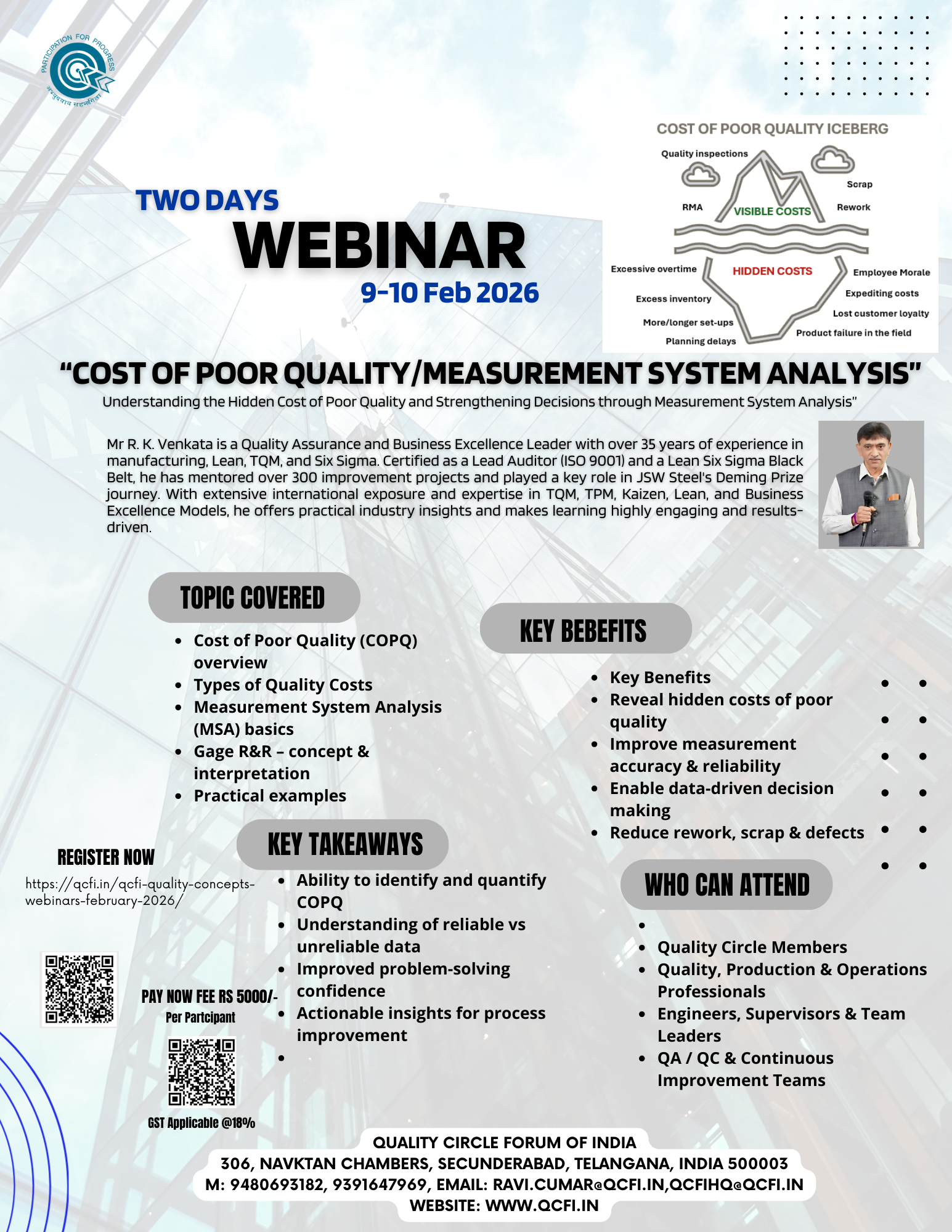 2 days webinar on “COST OF POOR QUALITY/MEASUREMENT SYSTEM ANALYSIS” on 9-10th Feb, 2026
