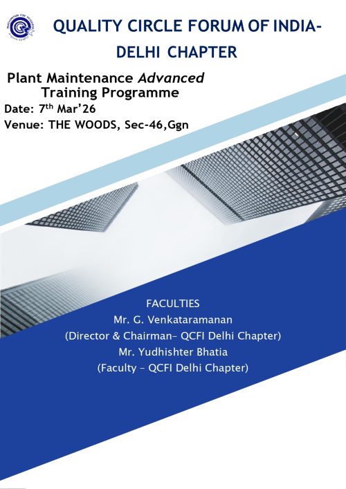 We are pleased to announce the Plant Maintenance Advanced Training Program on 7th March, 2026 by QCFI Delhi Chapter
