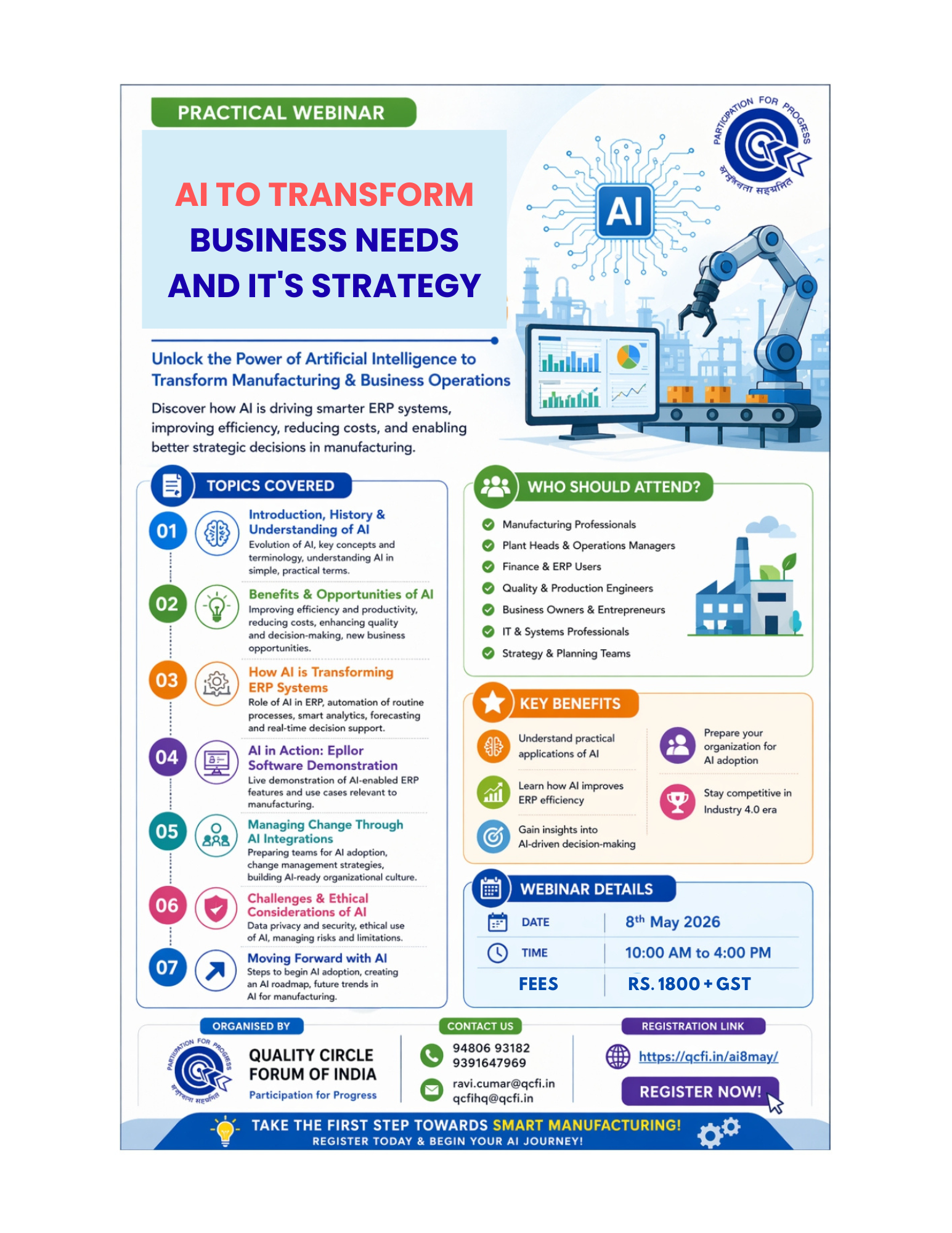 We are pleased to announce that we are conducting Webinar on AI to transform business needs and its strategy on 8th May 2026.