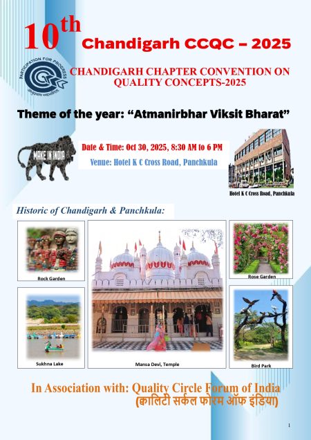 Greetings from QCFI Haridwar Chapter! We are pleased to announce 15th Haridwar Chapter Convention on Quality Concepts (HCCQC-2025). Date: 4th & 5th October 2025 Venue: Delhi Public School, Daulatpur, Haridwar, Uttarakhand View and Download the Brochure For any Enquiry please contact: Sahil Singh: 9068809882 Anirudh Vats :766800747